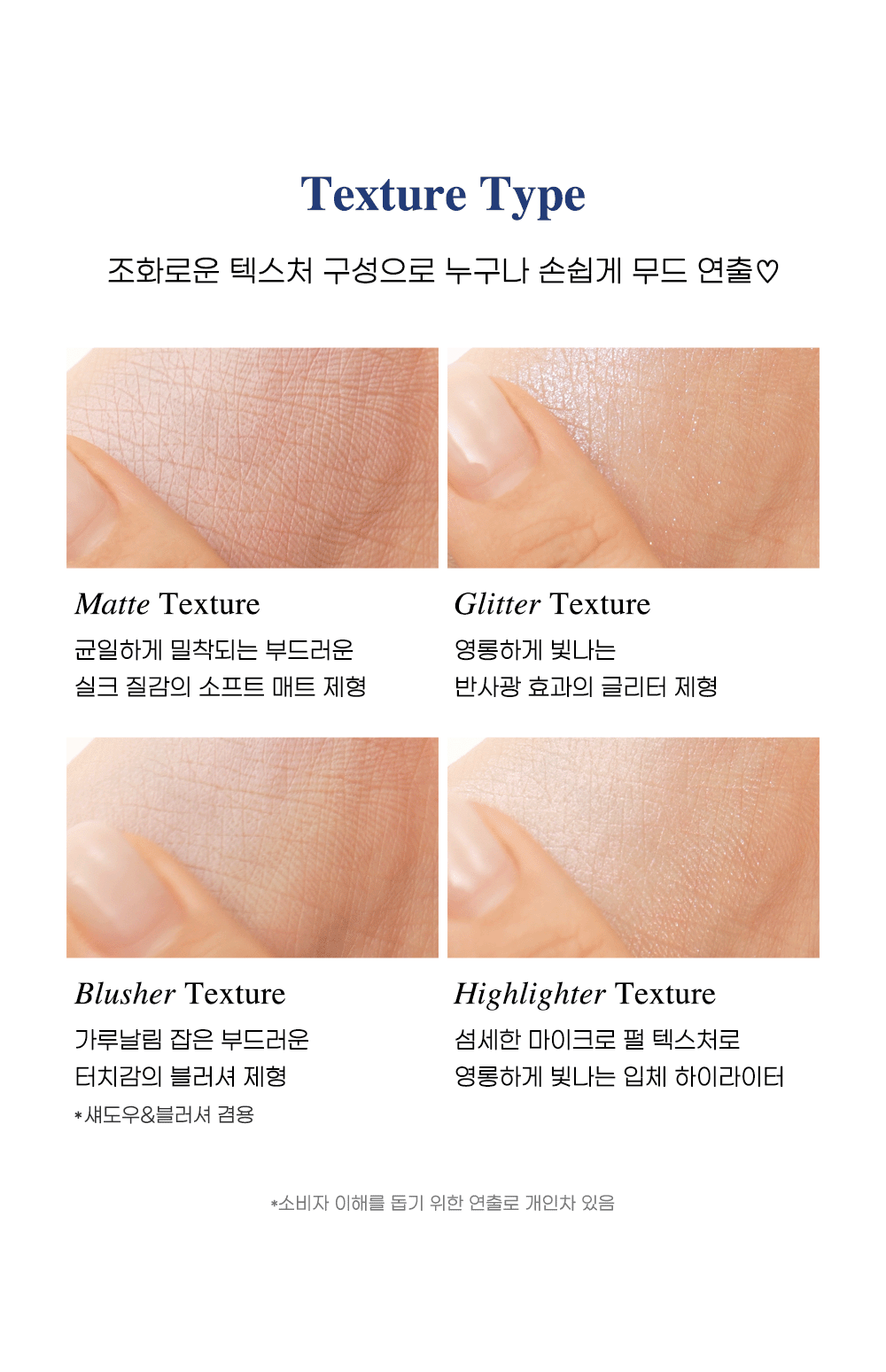 #01 탤크,마이카,보론나이트라이드,티타늄디옥사이드,알루미늄전분옥테닐석시네이트,카프릴릭/카프릭트라이글리세라이드,징크스테아레이트,실리카,다이아이소스테아릴말레이트,1,2-헥산다이올,카민,글리세릴카프릴레이트,다이메티콘,트라이에톡시카프릴릴실레인,메티콘,적색산화철,세테아릴알코올,황색산화철,말토덱스트린 #02 칼슘알루미늄보로실리케이트,폴리에틸렌,페닐트라이메티콘,징크스테아레이트,아이소노닐아이소노나노에이트,다이메티콘/비닐다이메티콘크로스폴리머,카프릴릭/카프릭트라이글리세라이드,다이아이소스테아릴말레이트,메틸프로판다이올,티타늄디옥사이드,실리카다이메틸실릴레이트,1,2-헥산다이올,틴옥사이드,글리세릴카프릴레이트,실리카,마이카,카민 #03 칼슘티타늄보로실리케이트,칼슘알루미늄보로실리케이트,페닐트라이메티콘,티타늄디옥사이드,폴리에틸렌,징크스테아레이트,아이소노닐아이소노나노에이트,카프릴릭/카프릭트라이글리세라이드,마이카,다이아이소스테아릴말레이트,메틸프로판다이올,실리카다이메틸실릴레이트,다이메티콘/비닐다이메티콘크로스폴리머,적색산화철,1,2-헥산다이올,틴옥사이드,글리세릴카프릴레이트,카민,실리카 #04 마이카,티타늄디옥사이드,탤크,보론나이트라이드,알루미늄전분옥테닐석시네이트,카프릴릭/카프릭트라이글리세라이드,징크스테아레이트,실리카,다이아이소스테아릴말레이트,카민,1,2-헥산다이올,다이메티콘,황색4호,글리세릴카프릴레이트,트라이에톡시카프릴릴실레인,메티콘,틴옥사이드,세테아릴알코올 #05 마이카,탤크,망가니즈바이올렛,보론나이트라이드,알루미늄전분옥테닐석시네이트,칼슘알루미늄보로실리케이트,티타늄디옥사이드,카프릴릭/카프릭트라이글리세라이드,징크스테아레이트,실리카,적색산화철,다이아이소스테아릴말레이트,1,2-헥산다이올,흑색산화철,글리세릴카프릴레이트,다이메티콘,트라이에톡시카프릴릴실레인,메티콘,황색산화철,세테아릴알코올,틴옥사이드 #06 탤크,마이카,보론나이트라이드,알루미늄전분옥테닐석시네이트,카프릴릭/카프릭트라이글리세라이드,티타늄디옥사이드,망가니즈바이올렛,징크스테아레이트,실리카,다이아이소스테아릴말레이트,카민,1,2-헥산다이올,황색4호,글리세릴카프릴레이트,다이메티콘,트라이에톡시카프릴릴실레인,메티콘,적색산화철,세테아릴알코올,흑색산화철,말토덱스트린 #07 마이카,티타늄디옥사이드,탤크,보론나이트라이드,알루미늄전분옥테닐석시네이트,카프릴릭/카프릭트라이글리세라이드,징크스테아레이트,실리카,다이아이소스테아릴말레이트,카민,황색산화철,1,2-헥산다이올,글리세릴카프릴레이트,다이메티콘,트라이에톡시카프릴릴실레인,메티콘,세테아릴알코올 #07 마이카,티타늄디옥사이드,탤크,보론나이트라이드,알루미늄전분옥테닐석시네이트,카프릴릭/카프릭트라이글리세라이드,징크스테아레이트,실리카,다이아이소스테아릴말레이트,카민,황색산화철,1,2-헥산다이올,글리세릴카프릴레이트,다이메티콘,트라이에톡시카프릴릴실레인,메티콘,세테아릴알코올 #08 탤크,마이카,칼슘알루미늄보로실리케이트,보론나이트라이드,알루미늄전분옥테닐석시네이트,카프릴릭/카프릭트라이글리세라이드,티타늄디옥사이드,징크스테아레이트,실리카,다이아이소스테아릴말레이트,카민,황색산화철,망가니즈바이올렛,1,2-헥산다이올,아이소노닐아이소노나노에이트,다이메티콘,트라이에톡시카프릴릴실레인,메티콘,틴옥사이드,말토덱스트린,세테아릴알코올 #09 마이카,탤크,보론나이트라이드,망가니즈바이올렛,알루미늄전분옥테닐석시네이트,카프릴릭/카프릭트라이글리세라이드,티타늄디옥사이드,마그네슘미리스테이트,실리카,흑색산화철,적색산화철,다이아이소스테아릴말레이트,황색산화철,1,2-헥산다이올,글리세릴카프릴레이트,다이메티콘,트라이에톡시카프릴릴실레인,메티콘,세테아릴알코올 #09 마이카,탤크,보론나이트라이드,망가니즈바이올렛,알루미늄전분옥테닐석시네이트,카프릴릭/카프릭트라이글리세라이드,티타늄디옥사이드,마그네슘미리스테이트,실리카,흑색산화철,적색산화철,다이아이소스테아릴말레이트,황색산화철,1,2-헥산다이올,글리세릴카프릴레이트,다이메티콘,트라이에톡시카프릴릴실레인,메티콘,세테아릴알코올 #10 망가니즈바이올렛,흑색산화철,탤크,보론나이트라이드,마이카,알루미늄전분옥테닐석시네이트,적색산화철,실리카,카프릴릭/카프릭트라이글리세라이드,황색산화철,징크스테아레이트,다이아이소스테아릴말레이트,1,2-헥산다이올,다이메티콘,글리세릴카프릴레이트,다이메티콘,트라이에톡시카프릴릴실레인,세테아릴알코올 #하트블러셔 마이카,티타늄디옥사이드,펜틸렌글라이콜,하이드로제네이티드레시틴,카민,글리세린,카프릴릴글라이콜,세테아릴에틸헥사노에이트,폴리솔베이트80,글리세릴카프릴레이트,트라이에톡시카프릴릴실레인,에틸헥실글리세린,알루미늄하이드록사이드,스쿠알란,젤란검,아이리쉬모스가루,옥틸도데실스테아로일스테아레이트,적색산화철,흑색산화철,말토덱스트린,토코