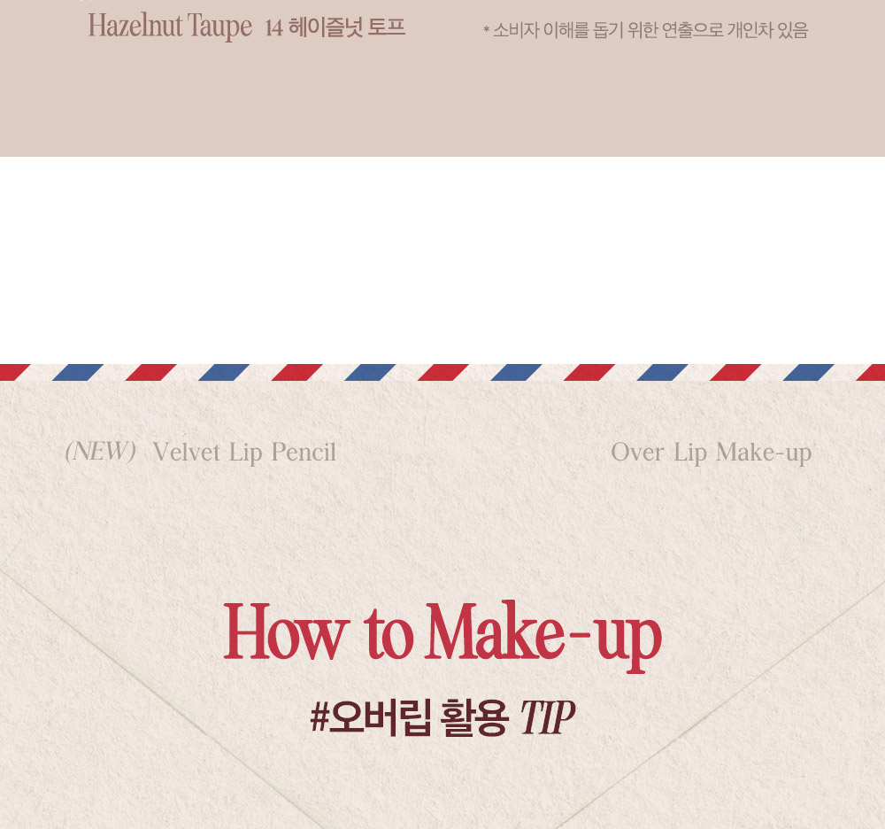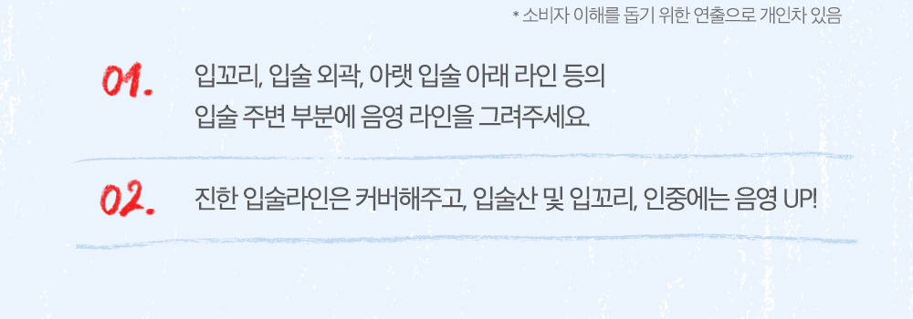 사용방법 입술 라인을 따라 자연스럽게 그려주어 오버립을 연출해 줍니다.