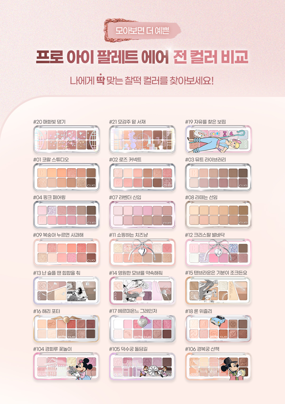 018-1: 칼슘알루미늄보로실리케이트,티타늄디옥사이드 (CI 77891),비스-다이글리세릴폴리아실아디페이트-2,다이페닐실록시페닐트라이메티콘,폴리프로필렌,칼슘티타늄보로실리케이트,옥틸도데칸올,실리카,다이아이소스테아릴말레이트,하이드로제네이티드캐스터오일다이머다이리놀레에이트,마그네슘스테아레이트,폴리부틸렌테레프탈레이트,피토스테릴/이소스테아릴/세틸/스테아릴/베헤닐다이머디리놀리에이트,폴리글리세릴-2트라이아이소스테아레이트,칼슘소듐보로실리케이트,마이카 (CI 77019),아크릴레이트코폴리머,에틸렌/브이에이코폴리머,메틸프로판다이올,합성플루오르플로고파이트,프로판다이올,다이스테아다이모늄헥토라이트,프로필렌카보네이트,트라이에톡시카프릴릴실레인,틴옥사이드,적색산화철 (CI 77491),카민 (CI 75470) 018-2: 탤크,마이카 (CI 77019),티타늄디옥사이드 (CI 77891),보론나이트라이드,실리카,마그네슘미리스테이트,옥틸도데실스테아로일스테아레이트,페닐트라이메티콘,마그네슘스테아레이트,마카다미아씨오일,메틸프로판다이올,다이메티콘,프로판다이올,다이메티콘올스테아레이트,알루미늄하이드록사이드,라우로일라이신,메티콘,하이드로제네이티드레시틴,말토덱스트린,적색산화철 (CI 77491),황색산화철 (CI 77492),카민 (CI 75470),황색4호 (CI 19140),흑색산화철 (CI 77499),울트라마린 (CI 77007) 018-3: 다이메티콘,합성플루오르플로고파이트,티타늄디옥사이드 (CI 77891),마이카 (CI 77019),메틸메타크릴레이트크로스폴리머,네오펜틸글라이콜다이에틸헥사노에이트,헥실라우레이트,나일론-12,다이메티콘/비닐다이메티콘크로스폴리머,칼슘티타늄보로실리케이트,다이글리세릴세바케이트/아이소팔미테이트,솔비탄세스퀴아이소스테아레이트,다이펜타에리스리틸헥사하이드록시스테아레이트/헥사스테아레이트/헥사로지네이트,마그네슘미리스테이트,프로판다이올,합성왁스,말토덱스트린,토코페롤,틴옥사이드,페녹시에탄올,적색산화철 (CI 77491),황색4호 (CI 19140),카민 (CI 75470),황색산화철 (CI 77492) 018-4: 탤크,마이카 (CI 77019),티타늄디옥사이드 (CI 77891),실리카,카민 (CI 75470),옥틸도데칸올,옥틸도데실스테아로일스테아레이트,페닐트라이메티콘,적색산화철 (CI 77491),보론나이트라이드,마그네슘미리스테이트,메틸프로판다이올,카프릴릭/카프릭트라이글리세라이드,다이메티콘올스테아레이트,다이펜타에리스리틸헥사하이드록시스테아레이트/헥사스테아레이트/헥사로지네이트,마그네슘스테아레이트,프로판다이올,다이아이소스테아릴말레이트,메티콘,다이메티콘,트라이에톡시카프릴릴실레인,알루미늄하이드록사이드,하이드로제네이티드레시틴,말토덱스트린,황색산화철 (CI 77492),황색4호 (CI 19140),울트라마린 (CI 77007),흑색산화철 (CI 77499) 018-5: 탤크,합성플루오르플로고파이트,마이카 (CI 77019),실리카,티타늄디옥사이드 (CI 77891),보론나이트라이드,카프릴릭/카프릭트라이글리세라이드,다이아이소스테아릴말레이트,마그네슘미리스테이트,적색산화철 (CI 77491),흑색산화철 (CI 77499),마그네슘스테아레이트,메틸프로판다이올,프로판다이올,다이메티콘올스테아레이트,라우로일라이신,트라이에톡시카프릴릴실레인,알루미늄하이드록사이드,카올린,말토덱스트린,황색산화철 (CI 77492),망가니즈바이올렛 (CI 77742),카민 (CI 75470),황색4호 (CI 19140) 018-6: 탤크,알루미늄전분옥테닐석시네이트,합성플루오르플로고파이트,티타늄디옥사이드 (CI 77891),흑색산화철 (CI 77499),마이카 (CI 77019),황색산화철 (CI 77492),적색산화철 (CI 77491),마그네슘미리스테이트,카프릴릭/카프릭트라이글리세라이드,다이아이소스테아릴말레이트,망가니즈바이올렛 (CI 77742),메틸프로판다이올,트라이에톡시카프릴릴실레인,마그네슘스테아레이트,프로판다이올,실리카,다이메티콘,알루미늄하이드록사이드,카올린,말토덱스트린,울트라마린 (CI 77007),카민 (CI 75470) 018-7: 탤크,마이카 (CI 77019),티타늄디옥사이드 (CI 77891),실리카,바륨설페이트,마그네슘미리스테이트,옥틸도데실스테아로일스테아레이트,페닐트라이메티콘,마그네슘스테아레이트,다이메티콘,마카다미아씨오일,메틸프로판다이올,다이펜타에리스리틸헥사하이드록시스테아레이트/헥사스테아레이트/헥사로지네이트,다이아이소스테아릴말레이트,프로판다이올,다이메티콘올스테아레이트,라우로일라이신,트라이에톡시카프릴릴실레인,알루미늄하이드록사이드,말토덱스트린,황색산화철 (CI 77492),적색산화철 (CI 77491),카민 (CI 75470),흑색산화철 (CI 77499) 018-8: 칼슘알루미늄보로실리케이트,탤크,티타늄디옥사이드 (CI 77891),나일론-12,옥틸도데실스테아로일스테아레이트,페닐트라이메티콘,카프릴릭/카프릭트라이글리세라이드,마이카 (CI 77019),실리카,마그네슘미리스테이트,칼슘소듐보로실리케이트,비스-다이글리세릴폴리아실아디페이트-2,보론나이트라이드,다이메티콘,합성플루오르플로고파이트,마그네슘스테아레이트,다이펜타에리스리틸헥사하이드록시스테아레이트/헥사스테아레이트/헥사로지네이트,다이아이소스테아릴말레이트,마카다미아씨오일,메틸프로판다이올,폴리글리세릴-2트라이아이