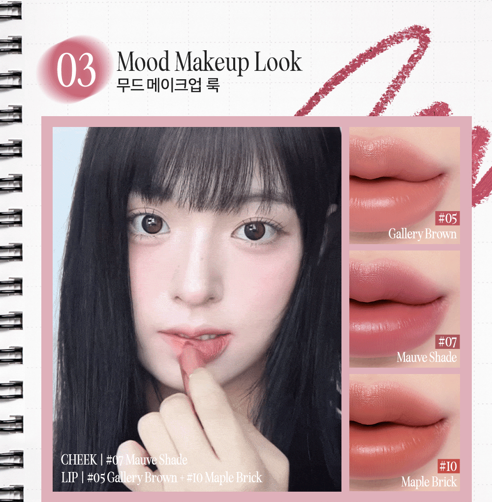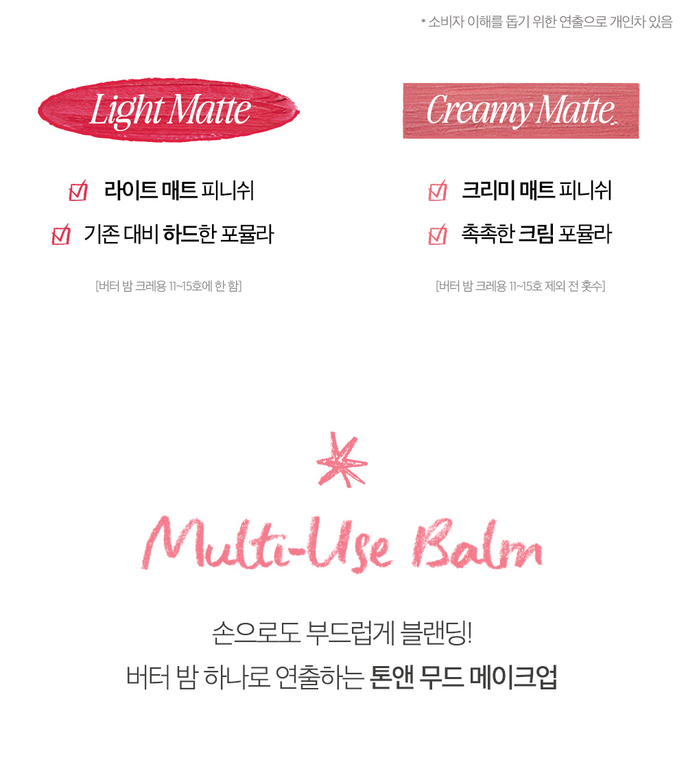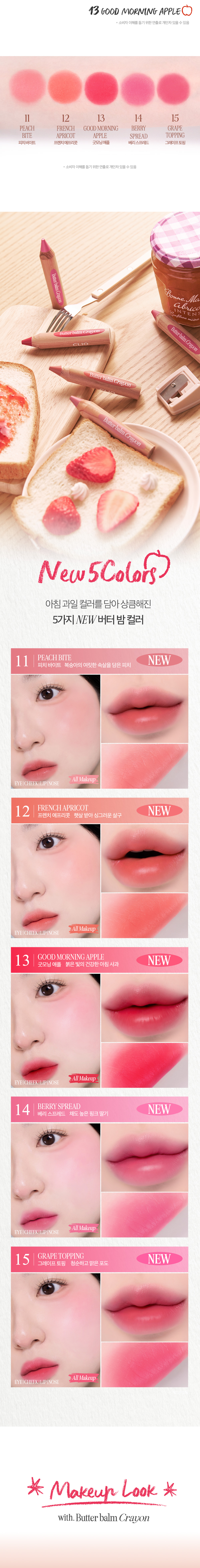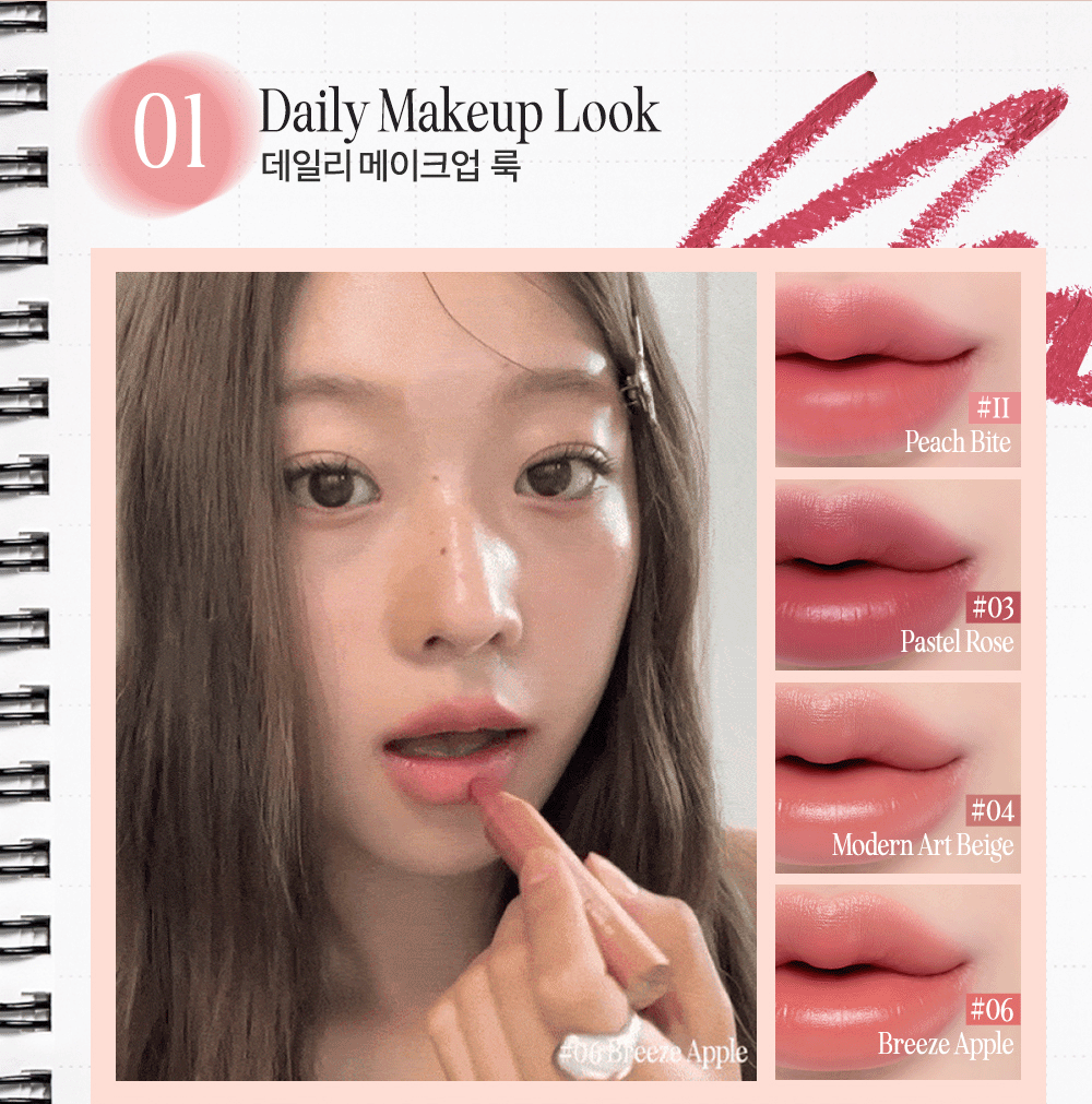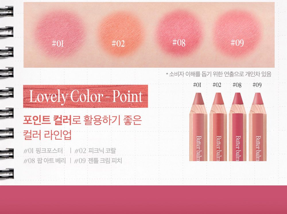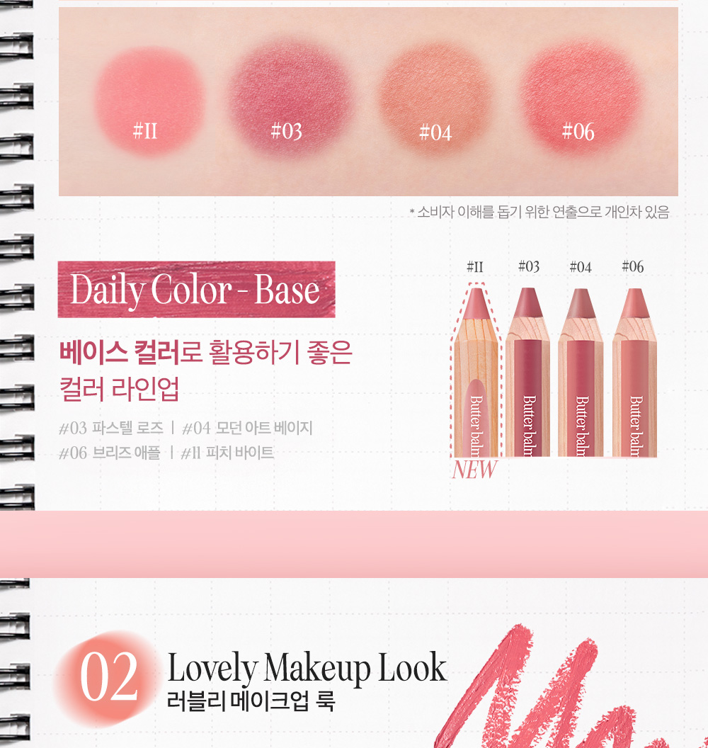 | 1호 피마자씨오일,카프릴릭/카프릭트라이글리세라이드, 글리세릴리시놀리에이트,칸데릴라왁스,합성비즈왁스, 미리스틸미리스테이트,티타늄디옥사이드 (CI 77891), 카나우바왁스, 세틸알코올,미리스틸락테이트,적색산화철 (CI 77491),황색산화철 (CI 77492),흑색산화철 (CI 77499),마이카 (CI 77019),탈크,적색202호,향료,토코페롤,적색202호,시어버터,아스코빌팔미테이트 2호 피마자씨오일,카프릴릭/카프릭트라이글리세라이드, 글리세릴리시놀리에이트,칸데릴라왁스,합성비즈왁스, 미리스틸미리스테이트, 카나우바왁스,티타늄디옥사이드 (CI 77891), 세틸알코올,미리스틸락테이트,마이카 (CI 77019),탈크,적색산화철 (CI 77491),황색산화철 (CI 77492),흑색산화철 (CI 77499),황색4호,향료,적색201호,토코페롤,적색202호,시어버터아스코빌팔미테이트 3호 피자마씨오일,카프릴릭/카프릭트라이글리세라이드, 글리세릴리시놀리에이트,칸데릴라왁스,티타늄디옥사이드 (CI 77891),합성비즈왁스, 미리스틸미리스테이트, 카나우바왁스,적색산화철 (CI 77491),황색산화철 (CI 77492),흑색산화철 (CI 77499), 세틸알코올,마이카 (CI 77019),미리스틸락테이트,탈크,적색202호,향료,토코페롤,시어버터,아스코빌팔미테이트 4호 피자마씨오일,카프릴릭/카프릭트라이글리세라이드, 글리세릴리시놀리에이트,칸데릴라왁스,합성비즈왁스, 미리스틸미리스테이트, 카나우바왁스,티타늄디옥사이드 (CI 77891), 세틸알코올,마이카 (CI 77019),미리스틸락테이트,탈크,적색산화철 (CI 77491),황색산화철 (CI 77492),흑색산화철 (CI 77499),향료,토코페롤,적색201호,적색202호,황색4호,시어버터아스코빌팔미테이트 5호 피자마씨오일,카프릴릭/카프릭트라이글리세라이드, 글리세릴리시놀리에이트,칸데릴라왁스,티타늄디옥사이드 (CI 77891),합성비즈왁스, 미리스틸미리스테이트, 카나우바왁스, 세틸알코올,적색산화철 (CI 77491),황색산화철 (CI 77492),흑색산화철 (CI 77499),미리스틸락테이트,마이카 (CI 77019),탈크,적색202호,향료,토코페롤,시어버터,아스코빌팔미테이트 6호 피자마씨오일,카프릴릭/카프릭트라이글리세라이드, 글리세릴리시놀리에이트,칸데릴라왁스,티타늄디옥사이드 (CI 77891),합성비즈왁스, 미리스틸미리스테이트, 카나우바왁스,적색산화철 (CI 77491),황색산화철 (CI 77492),흑색산화철 (CI 77499), 세틸알코올,미리스틸락테이트,적색202호,마이카 (CI 77019),탈크,황색4호,향료,토코페롤,적색104호의(1),적색201호,시어버터,아스코빌팔미테이트 7호 피자마씨오일,카프릴릭/카프릭트라이글리세라이드, 글리세릴리시놀리에이트,칸데릴라왁스,합성비즈왁스, 미리스틸미리스테이트, 카나우바왁스,티타늄디옥사이드 (CI 77891), 세틸알코올,미리스틸락테이트,마이카 (CI 77019),탈크,적색202호,적색산화철 (CI 77491),황색산화철 (CI 77492),흑색산화철 (CI 77499),황색4호,향료,토코페롤,시어버터,아스코빌팔미테이트 8호 피자마씨오일,카프릴릭/카프릭트라이글리세라이드, 글리세릴리시놀리에이트,칸데릴라왁스,합성비즈왁스, 미리스틸미리스테이트, 카나우바왁스,티타늄디옥사이드 (CI 77891), 세틸알코올,미리스틸락테이트,적색226호,망가니즈 바이올렛 (CI 77742),마이카 (CI 77019),탈크,향료,토코페롤,적색산화철 (CI 77491),황색산화철 (CI 77492),흑색산화철 (CI 77499),시어버터,아스코빌팔미테이트 9호 피자마씨오일,카프릴릭/카프릭트라이글리세라이드,티타늄디옥사이드 (CI 77891), 글리세릴리시놀리에이트,칸데릴라왁스,합성비즈왁스, 미리스틸미리스테이트, 카나우바왁스, 세틸알코올,적색산화철 (CI 77491),황색산화철 (CI 77492),흑색산화철 (CI 77499),미리스틸락테이트,적색201호,적색202호,마이카 (CI 77019),탈크,향료,토코페롤,시어버터,아스코빌팔미테이트 10호 피자마씨오일,카프릴릭/카프릭트라이글리세라이드, 글리세릴리시놀리에이트,칸데릴라왁스,티타늄디옥사이드 (CI 77891),합성비즈왁스, 미리스틸미리스테이트,적색산화철 (CI 77491),황색산화철 (CI 77492),흑색산화철 (CI 77499), 카나우바왁스, 세틸알코올,미리스틸락테이트,적색202호,향료,토코페롤,마이카 (CI 77019),시어버터,탈크,아스코빌팔미테이트 |