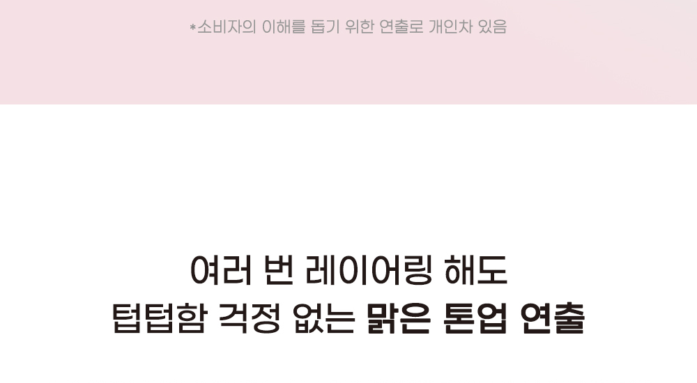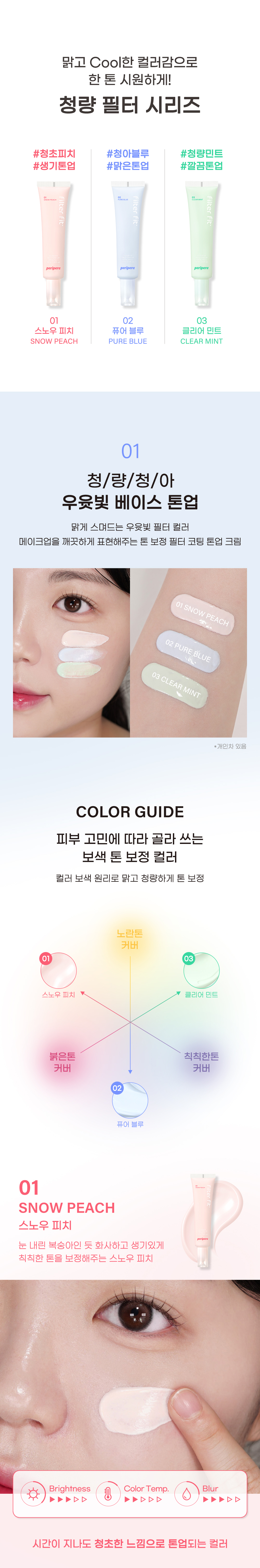 | 1호스노우피치: 정제수,카프릴릭/카프릭트라이글리세라이드,티타늄디옥사이드 (CI 77891),글리세린,메틸트라이메티콘,부틸렌글라이콜다이카프릴레이트/다이카프레이트,카프릴릴메티콘,다이카프릴릴카보네이트,디에칠아미노하이드록시벤조일헥실벤조에이트,에칠헥실트리아존,나이아신아마이드,펜틸렌글라이콜,폴리글리세릴-3다이스테아레이트,1,2-헥산다이올,포타슘세틸포스페이트,C20-22알킬포스페이트,알루미늄하이드록사이드,암모늄아크릴로일다이메틸타우레이트/브이피코폴리머,세테아릴올리베이트,솔비탄세스퀴올리에이트,트라이메틸실록시실리케이트,스테아릭애씨드,아이소도데케인,솔비탄올리베이트,실리카,트로메타민,글리세릴스테아레이트시트레이트,에틸헥실글리세린,트라이에톡시카프릴릴실레인,아데노신,트라이소듐에틸렌다이아민다이석시네이트,토코페롤,하이드로제네이티드레시틴,세라마이드엔피,소듐스테아로일글루타메이트,C20-22알코올,세테아릴알코올,카보머,향료,적색산화철 (CI 77491) , 2호퓨어블루 : 정제수 ,카프릴릭/카프릭트라이글리세라이드,티타늄디옥사이드 (CI 77891),글리세린,메틸트라이메티콘,부틸렌글라이콜다이카프릴레이트/다이카프레이트,카프릴릴메티콘,다이카프릴릴카보네이트 ,디에칠아미노하이드록시벤조일헥실벤조에이트 ,에칠헥실트리아존 ,나이아신아마이드 ,펜틸렌글라이콜 ,폴리글리세릴-3다이스테아레이트 ,1,2-헥산다이올 ,포타슘세틸포스페이트,C20-22알킬포스페이트,알루미늄하이드록사이드 ,암모늄아크릴로일다이메틸타우레이트/브이피코폴리머 ,세테아릴올리베이트 ,솔비탄세스퀴올리에이트 ,트라이메틸실록시실리케이트 ,스테아릭애씨드 아이소도데케인 ,솔비탄올리베이트 ,트로메타민 ,글리세릴스테아레이트시트레이트 ,에틸헥실글리세린 ,아데노신 ,트라이에톡시카프릴릴실레인 ,트라이소듐에틸렌다이아민다이석시네이트 ,토코페롤 ,실리카 ,하이드로제네이티드레시틴 ,세라마이드엔피 ,소듐스테아로일글루타메이트 ,C20-22알코올,세테아릴알코올 ,카보머 ,향료 ,청색1호 (CI 42090) ,적색227호 (CI 17200) 3호클리어민트: 정제수 ,카프릴릭/카프릭트라이글리세라이드,티타늄디옥사이드 (CI 77891),글리세린,메틸트라이메티콘,부틸렌글라이콜다이카프릴레이트/다이카프레이트,카프릴릴메티콘,다이카프릴릴카보네이트 ,디에칠아미노하이드록시벤조일헥실벤조에이트 ,에칠헥실트리아존 ,나이아신아마이드 ,펜틸렌글라이콜 ,폴리글리세릴-3다이스테아레이트 ,1,2-헥산다이올 ,포타슘세틸포스페이트,C20-22알킬포스페이트,알루미늄하이드록사이드 ,암모늄아크릴로일다이메틸타우레이트/브이피코폴리머 ,세테아릴올리베이트 ,솔비탄세스퀴올리에이트 ,트라이메틸실록시실리케이트 ,스테아릭애씨드 아이소도데케인 ,솔비탄올리베이트 ,트로메타민 ,글리세릴스테아레이트시트레이트 ,에틸헥실글리세린 ,아데노신 ,트라이에톡시카프릴릴실레인 ,트라이소듐에틸렌다이아민다이석시네이트 ,토코페롤 ,실리카 ,하이드로제네이티드레시틴 ,세라마이드엔피 ,소듐스테아로일글루타메이트 ,C20-22알코올,세테아릴알코올 ,카보머 ,향료,폴리메틸메타크릴레이트, 크로뮴옥사이드그린 (CI 77288) , |