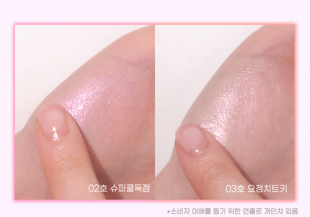 핑크-합성플루오르플로고파이트,티타늄디옥사이드,칼슘알루미늄보로실리케이트,탤크,카프릴릭/카프릭트라이글리세라이드,실리카,다이아이소스테아릴말레이트,징크스테아레이트,나일론-12,헥실라우레이트,마그네슘스테아레이트,다이메티콘,다이펜타에리스리틸헥사하이드록시스테아레이트/헥사스테아레이트/헥사로지네이트,하이드로제네이티드폴리아이소부텐,마이카,1,2-헥산다이올,적색산화철,틴옥사이드,카프릴릴글라이콜,글리세릴카프릴레이트,에틸헥실글리세린,스테아릭애씨드,적색226호 블루- 티타늄디옥사이드,합성플루오르플로고파이트,칼슘알루미늄보로실리케이트,카프릴릭/카프릭트라이글리세라이드,탤크,실리카,다이아이소스테아릴말레이트,징크스테아레이트,나일론-12,헥실라우레이트,마그네슘스테아레이트,다이메티콘,마이카,다이펜타에리스리틸헥사하이드록시스테아레이트/헥사스테아레이트/헥사로지네이트,하이드로제네이티드폴리아이소부텐,1,2-헥산다이올,틴옥사이드,카프릴릴글라이콜,글리세릴카프릴레이트,에틸헥실글리세린,페릭페로시아나이드,카민,스테아릭애씨드